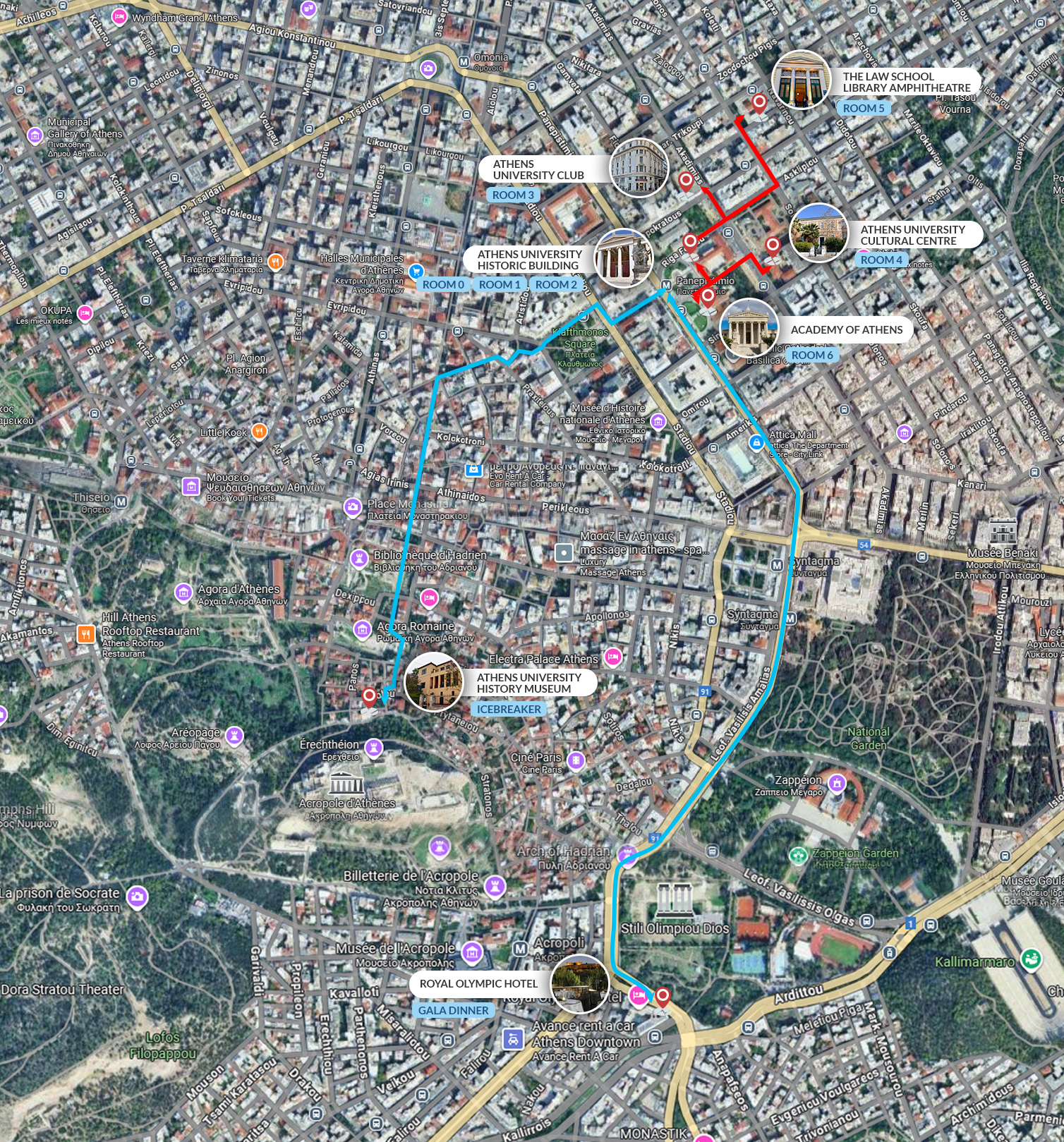 MedGU-25 sessions will take place from November 10th to 12th, 2025 at the Great Hall of the National and Kapodistrian University of Athens, the "Ioannis Drakopoulos" Amphitheatre, the "Alkis Argyriadis" Amphitheatre, the "IRIS" Cultural Events Hall of the University of Athens Club, the "Kostis Palamas" Hall (Guest House), the Law School Library Amphitheatre, and the Main Hall of the Academy of Athens: